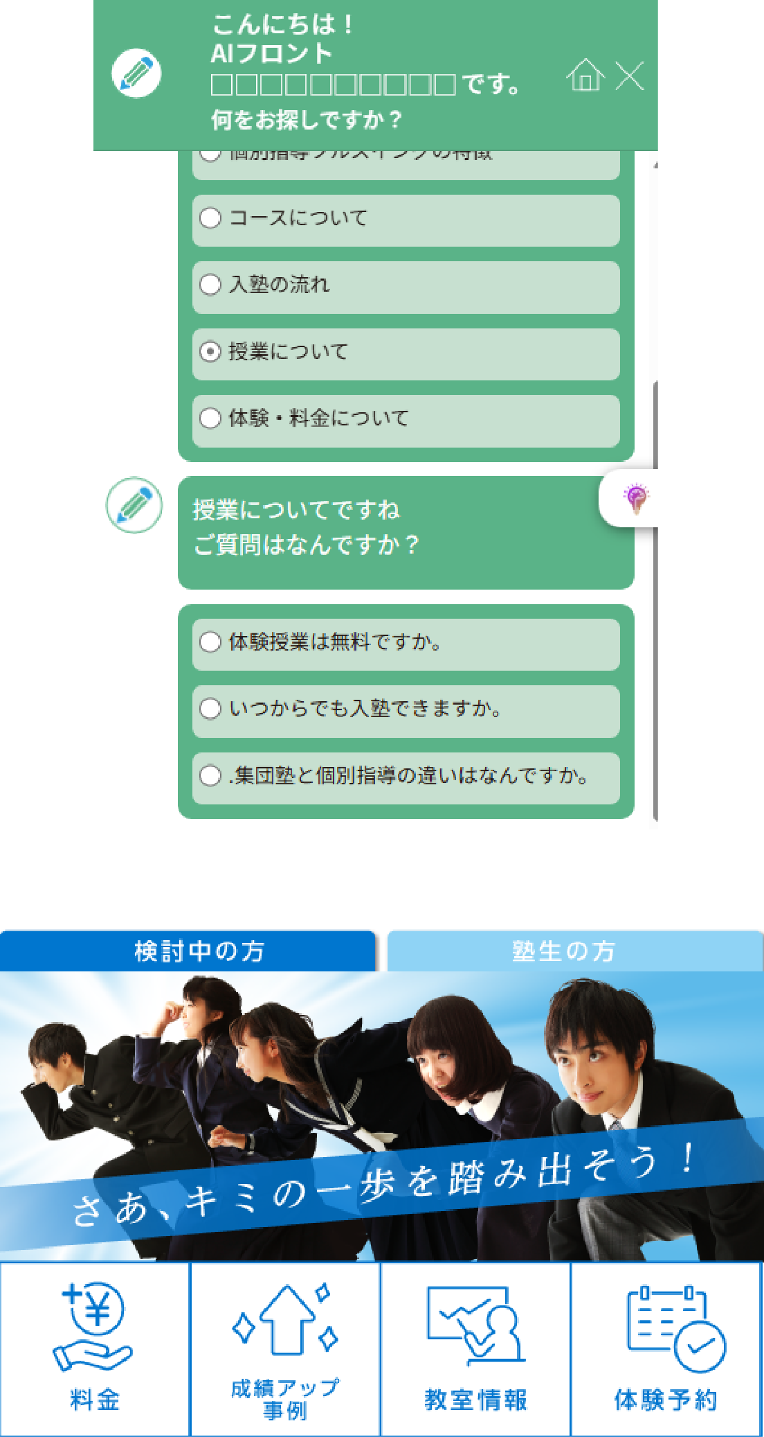 料金やコースの疑問を待たせずに0秒回答